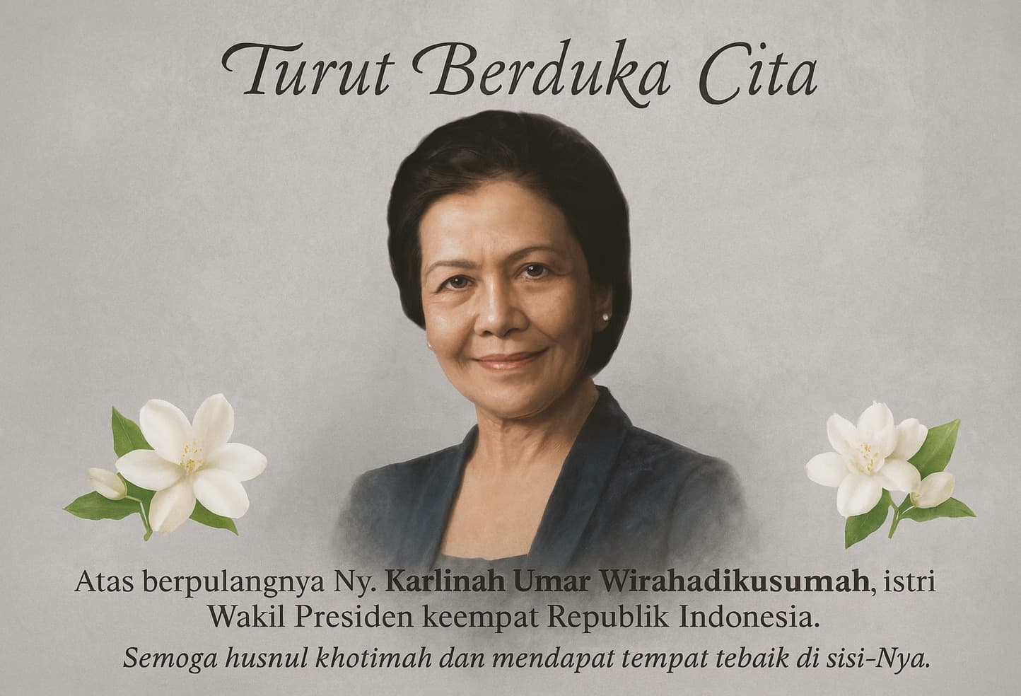 JAKARTA, incaberita.co.id – Redaksi membuka siaran dengan kabar duka yang menyentuh banyak generasi. Karlinah Djaja Atmadja, pendamping hidup Umar Wirahadikusumah yang menjabat sebagai Wakil Presiden Republik Indonesia ke-4 pada periode 1983 sampai 1988, tutup usia di Jakarta pada 6 Oktober 2025. Sosok yang akrab disapa Karlinah ini meninggalkan jejak pengabdian panjang, sebagian besar dikerjakan tanpa sorotan kamera, tetapi kuat dalam ingatan orang-orang yang pernah bersinggungan. Di ruang publik, namanya sering muncul bersamaan dengan kisah kesahajaan keluarga besar pelayan negara pada masa Orde Baru. Di ruang domestik, namanya identik dengan ketabahan serta kecermatan mengelola keluarga ketika sang suami mendapat mandat besar.