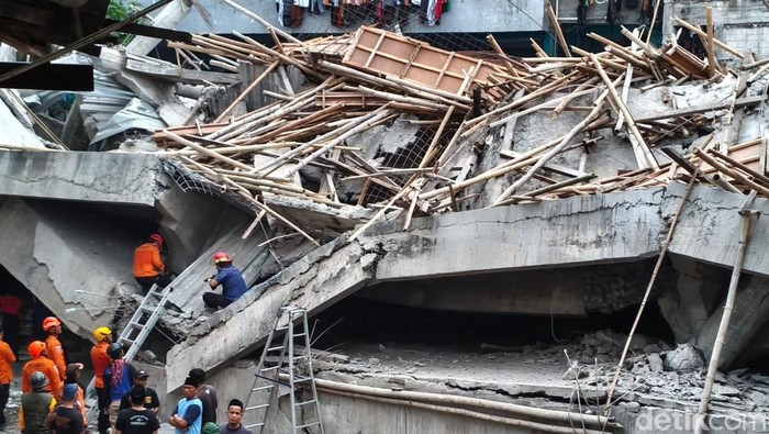 Tim SAR, polisi, pemadam kebakaran, relawan, dan tim medis dikerahkan. Karena bangunan kemungkinan longgar dan reruntuhan rawan bergeser, mereka bekerja sangat hati-hati agar tidak memicu keruntuhan susulan.